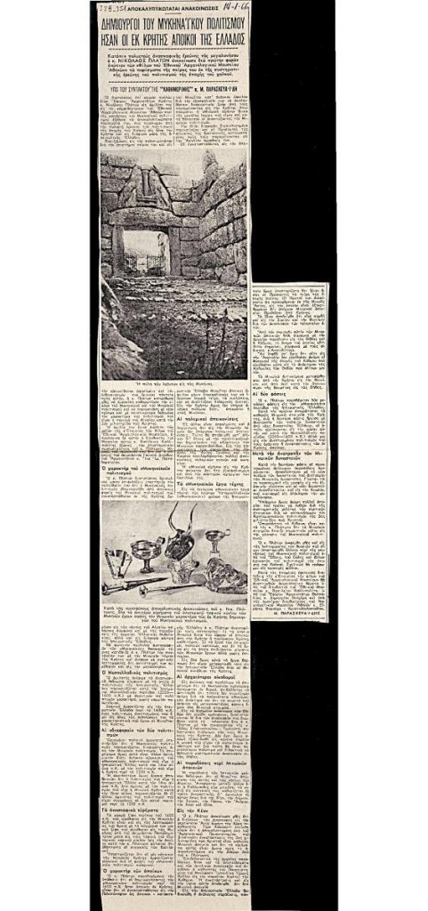 A clipping from the newspaper “I Kathimerini”, dated January 14, 1956.