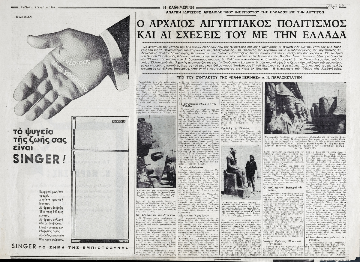 A clipping from the newspaper “I Kathimerini”, dated March 4, 1966.