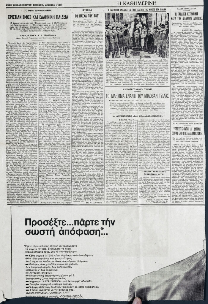 A clipping from the newspaper “I Kathimerini”, dated Apri 10, 1966.