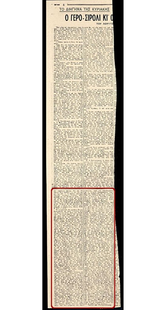 A clipping from the newspaper “I Kathimerini”, dated May 29, 1966.