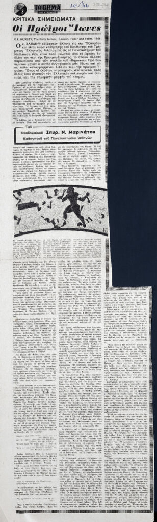 A clipping from the newspaper “I Kathimerini”, dated May 29, 1966.