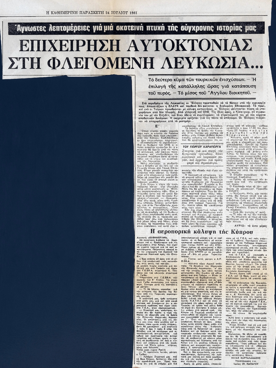 A clipping from the newspaper “I Kathimerini”, dated July 24, 1981.