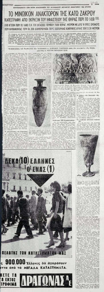 The Minoan palace of Lower Zakros was destroyed by an eruption of the volcano of Thira around 1450