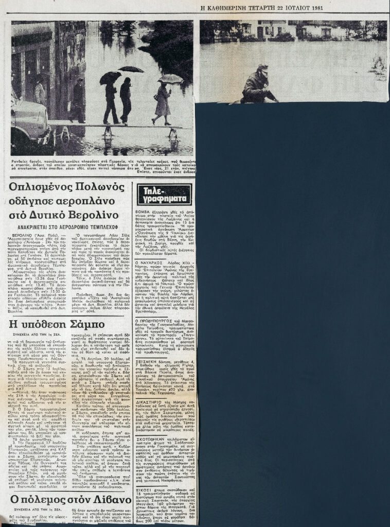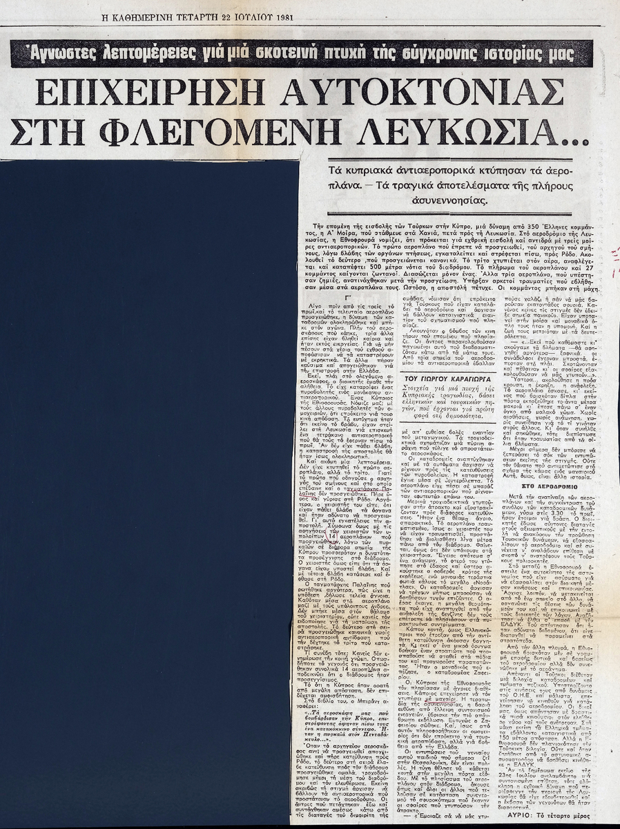 A clipping from the newspaper “I Kathimerini”, dated July 22, 1981.
