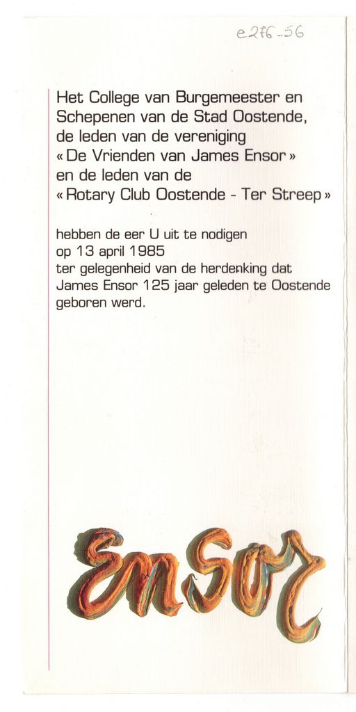 Ioannou Giorgos (1926 - 2017) ; Dali Savador (1904 - 1989) ; Ljuba Popović ; Lurçat Jean (1892 - 1966) ; Felix Labisse ; Magritte René (1898 - 1967) ; Constant Permeke ; Cesare Peverelli ; Bernard Buffet (1928 - 1999) ; Paul Delvaux ; Tsuguharu Foujita ; Edouard Leon Theodore Mesens ; Hans Bellmer (1902 - 1975) ; Oscar Dominguez ; Helmut Leherb ; Suzanne van Damme ; Andreu ; Ensor James (1860 - 1949) ; Dado ; Alberto Biasi (1937) ; Pierre-Yves Tremois ; Anto Carte (1886 - 1954) ; Claus ; Paul Jordan ; Marcel Delmotte ; Enrico Brandani (1914 - 1979) ; Franz Priking ; Eric Brusselmans (1884 - 1953) ; Rene Julien ; Georges Creten ; Danielle ; Pol Mara ; Roland Delcol ; Yves Rhaye ; Lucien Franck ; Haine ; John Hauser ; Jannin ; Laloux ; Christian Le Moult ; Lincke ; Mackowiak ; Auguste Mambour ; Marti ; Paulus ; Saverys ; Ferdinard Schirren ; Louis Thevenet ; Andries Van den Abeele
