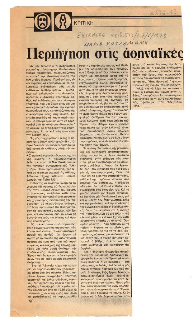 Spiteri-Veropoulou Ioanna (1920 - 2000) ; Franco Russoli ; Valsecchi Marco (1913 - 1980) ; Kotzamani Maria (1938 - 2012) ; Messinis Sotiris (1930 - 2017) ; Ragon Michel (1924 - 2020) ; Mourelos Georgios (1912 - 1994) ; Christou Chrysanthos (1922 - 2016) ; De Solier René (1914 - 1974) ; Papadakis Nikos E. (1934 - 2004)