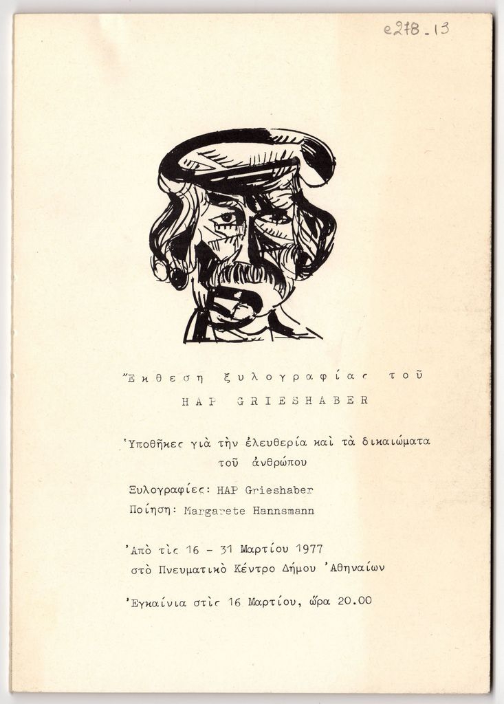 Spiteri-Veropoulou Ioanna (1920 - 2000) ; Papanoutsos Evangelos (1900 - 1982) ; Argyros Umvertos (1884 - 1963) ; Fotis Kontoglou (1895 - 1965) ; Michalis Tompros (1889 - 1974) ; Μιχάλης Περάνθης ; Zadkine Ossip (1890 - 1967) ; Vikatos Spyridon (1878 - 1960) ; Gioldasis Dimitrios (1897 - 1993) ; Athanassiadis-Novas, Georgios (1893 - 1987)