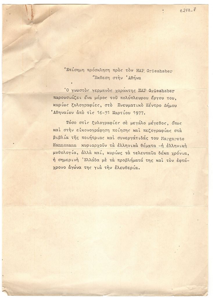 Fotis Kontoglou (1895 - 1965) ; Kaimis Julio (1897 - 1982) ; Pikionis Dimitris (1887 - 1968) ; HAP Grieshaber ; Margarete Hannsmann ; Isidora Rosenthal-Kamarinea