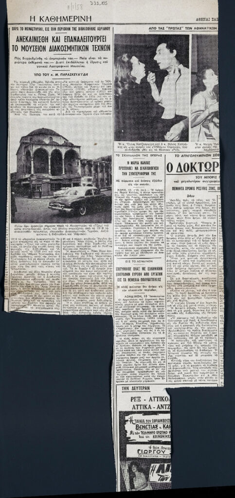 A clipping from the newspaper “I Kathimerini”, January 11, 1958.
