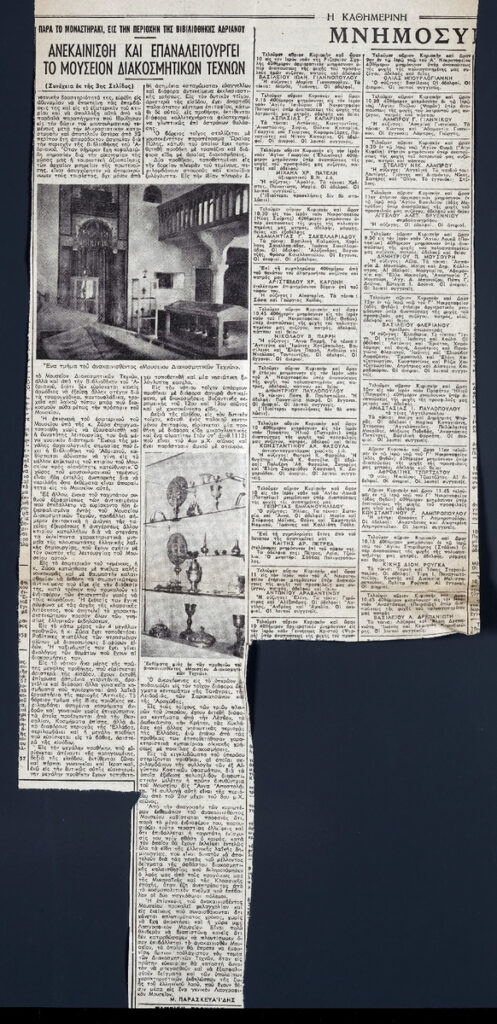 A clipping from the newspaper “I Kathimerini”, January 11, 1958.