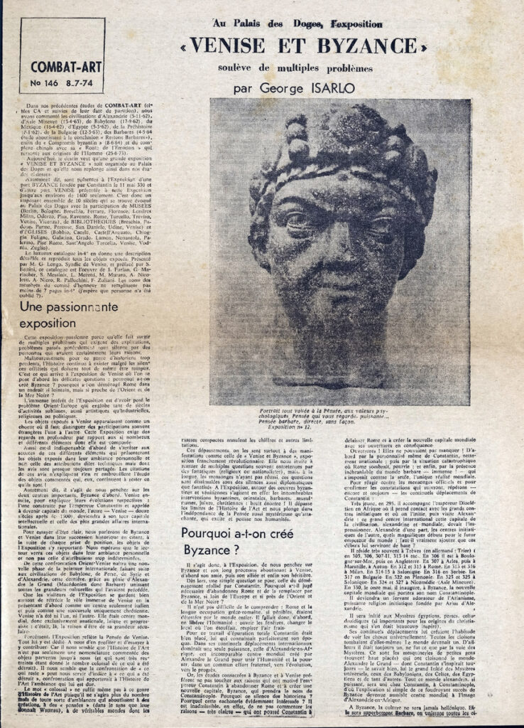 A clipping from the newspaper “Combat Art”, dated July 8, 1974.
