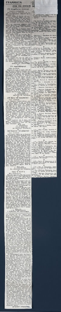 A clipping from the newspaper “Kathimerini”, dated January, 1964.