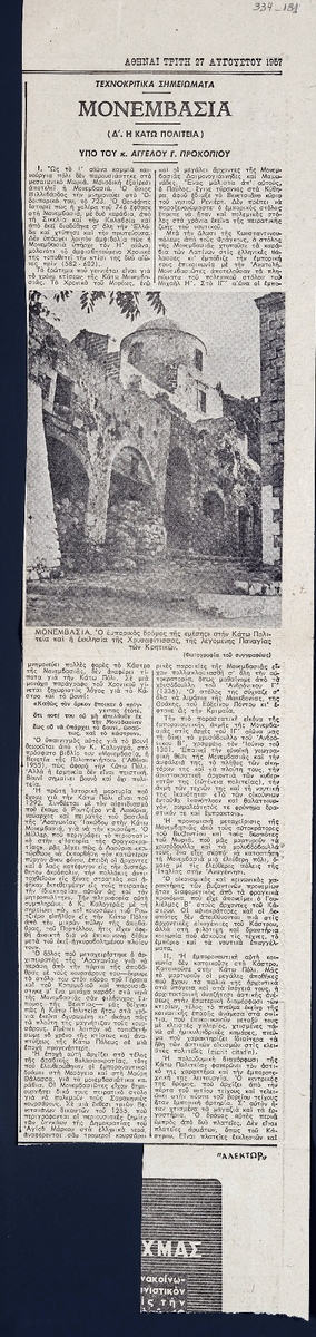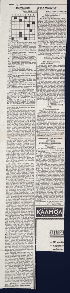 A clipping from the newspaper “Kathimerini”, dated August 27, 1957.