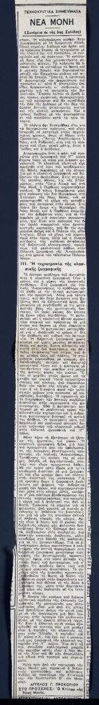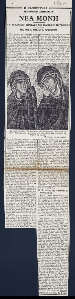 A clipping from the newspaper “Kathimerini”, dated September 24, 1957.
