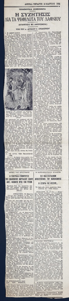 A clipping from the newspaper “Kathimerini”, dated March 16, 1955.