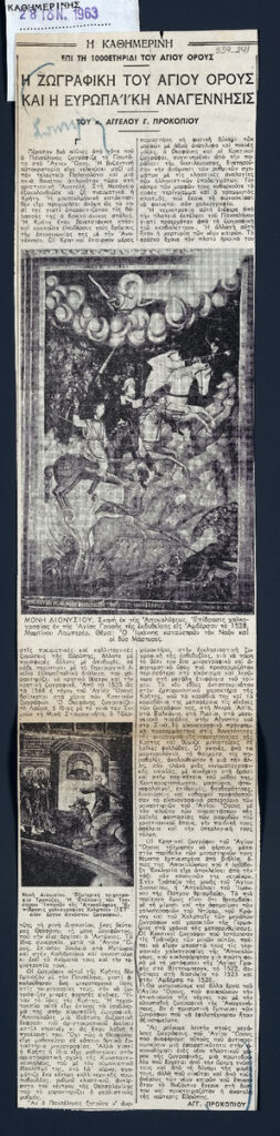 A clipping from the newspaper “Kathimerini”, dated June 28, 1963.