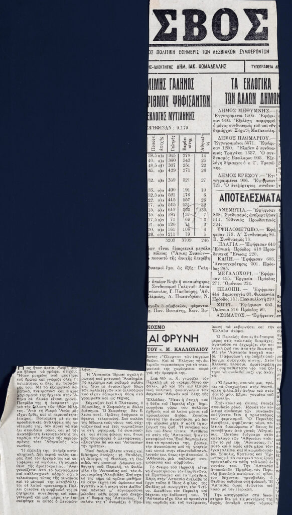 A clipping from the newspaper “Lesvos”.