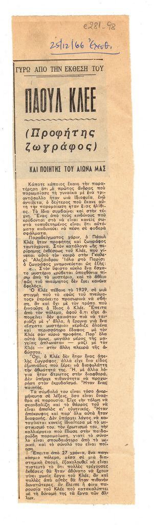 Spiteris Tonis (1910 - 1986) ; Klee Paul (1879 - 1940)