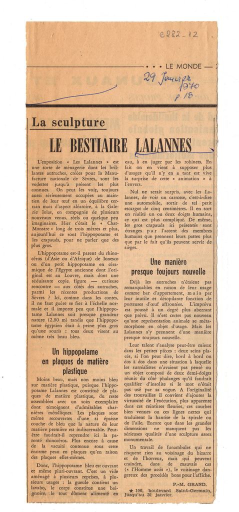 Boudaille Georges (1925 - 1991) ; Cogniat Raymond (1896 - 1977) ; Chevalier Denys (1921 - 1978) ; Jean-Jacques Lévêque (1931 - 2011) ; Zervos Christian (1889 - 1970) ; Paule-Marie Grand ; Sklavos Yerassimos (1927 - 1967) ; Jean-Dominique Rey ; Jean-Marie Dunoyer (1907 - 2000) ; Léone De la Grandville ; Gilles Plazy ; Michael Peppiatt ; Sabine Marchand ; Carol Cutler ; Jeanine Lipsi ; Pierre Dehaye ; Walter Zanini ; Cecile Goldscheider ; Vaslav Markevitch