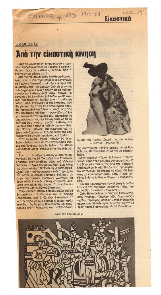 Spiteris Tonis (1910 - 1986) ; Katraki Vaso (1914 - 1988) ; Spiteri-Veropoulou Ioanna (1920 - 2000) ; José Pierre ; Michalis Katzourakis ; Fassianos Alekos (1935 - 2022) ; Simossi Gabriela (1926 - 1999) ; Tsoclis Costas (1930) ; Opy Zouni (1941 - 2008) ; Gaitis Yannis (1923 - 1984) ; Mytaras Dimitris (1934 - 2017) ; Karas Christos (1930 - 2023) ; Denis Schneider ; Vernadaki Eleni (1933) ; Takis (Vassilakis Panayiotis) (1925 - 2019) ; Sperantzas Vassilis (1938) ; Alexis Akrithakis (1939 - 1994) ; Achilleas Droungas (1940) ; Theofylaktopoulos Makis (1939 - 2023) ; Vlassis Kaniaris (1928 - 2011) ; Karavouzis Sarantis (1938 - 2011) ; Θεόδωρος Μανωλίδης (1940)