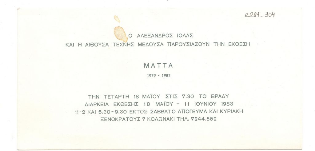 Roberto Matta (1911 - 2002) ; Dali Savador (1904 - 1989) ; Hatzikyriakos-Ghika Nikos (1906 - 1994) ; Calder Alexander (1898 - 1976) ; Moralis Yannis (1916 - 2009) ; Pavlos (Dionyssopoulos) (1930 - 2019) ; Fassianos Alekos (1935 - 2022) ; Tsoclis Costas (1930) ; Max Ernst (1891 - 1976) ; Man Ray (1890 - 1976) ; Mimmo Rotella ; Claude Lalanne ; Στήβεν Αντωνάκος (1926 - 2013) ; Arman (1928 - 2005) ; Saint Phalle Niki de (1930 - 2002) ; Takis (Vassilakis Panayiotis) (1925 - 2019) ; Rauschenberg Robert (1925 - 2008) ; Nicolas Schöffer ; Miguel-Ortiz Berrocal (1933 - 2006) ; De Chirico Giorgio (1888 - 1978) ; Roger Bezombes (1913 - 1994) ; Achilleas Droungas (1940) ; Niki Kanagini (1933 - 2008) ; Kessanlis Nikos (1930 - 2004) ; Kokkinides Demosthenes (1929 - 2020) ; Yaacov Agam (1928) ; Karel Appel (1921 - 2006) ; Gundrun von Leitner ; Γ. Μιχαλέα ; Jacqueline Badord (1917 - 2013) ; Enrico Donati ; Νικολάου