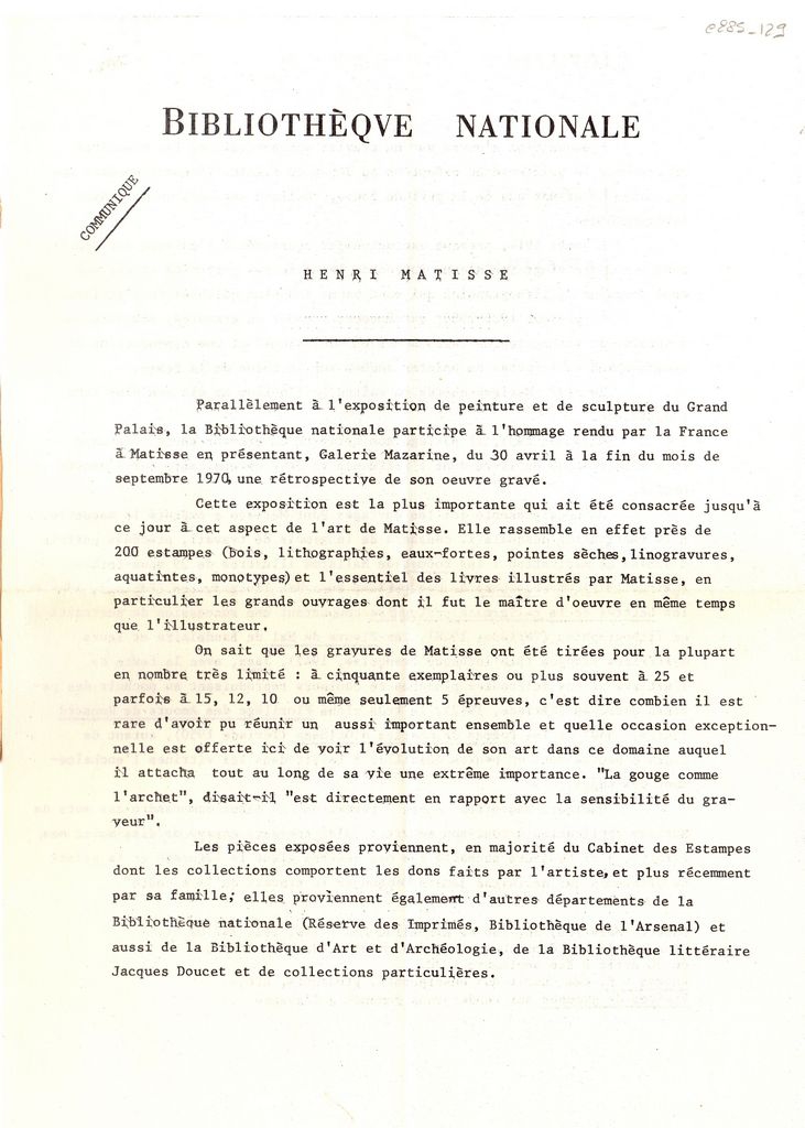 Henri Matisse (1869 - 1954) ; Besson George (1882 - 1971) ; Braun et Co Publications - Paris