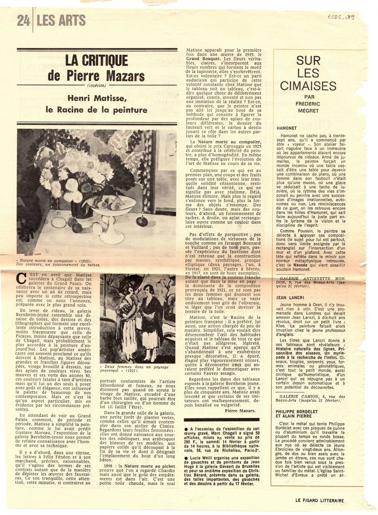 Henri Matisse (1869 - 1954) ; Besson George (1882 - 1971) ; Braun et Co Publications - Paris