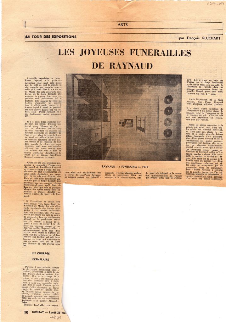 Catherine Millet ; Bernard Teyssedre ; Gerald Gassiot-Talabot ; François Pluchart ; Michel Journiac ; Gina Pane ; Jochen Gerz ; Touzenis Giorgos (1957) ; Gilbert Lascault ; Jean- François Bory (1938) ; Jacques Pineau ; Pierre Faveton ; Chacallis, Louis (1943) ; Max Charvolen ; Fischer, Hervé (1941) ; Roland Flexner ; Marcel Alocco (1937) ; Vivien Isnard ; Jean Mazeaufroid ; Serge Maccaferri ; Annette Messager ; Martin Miguel ; Jean- Pierre Pincemin ; Thenot ; Jean Georges Valentin ; Georges Guy ; Philippe Chartron ; Sabine Gowa ; R. Monticelli ; Karlheinz Nowald ; Alain Gerber ; Francis Roche