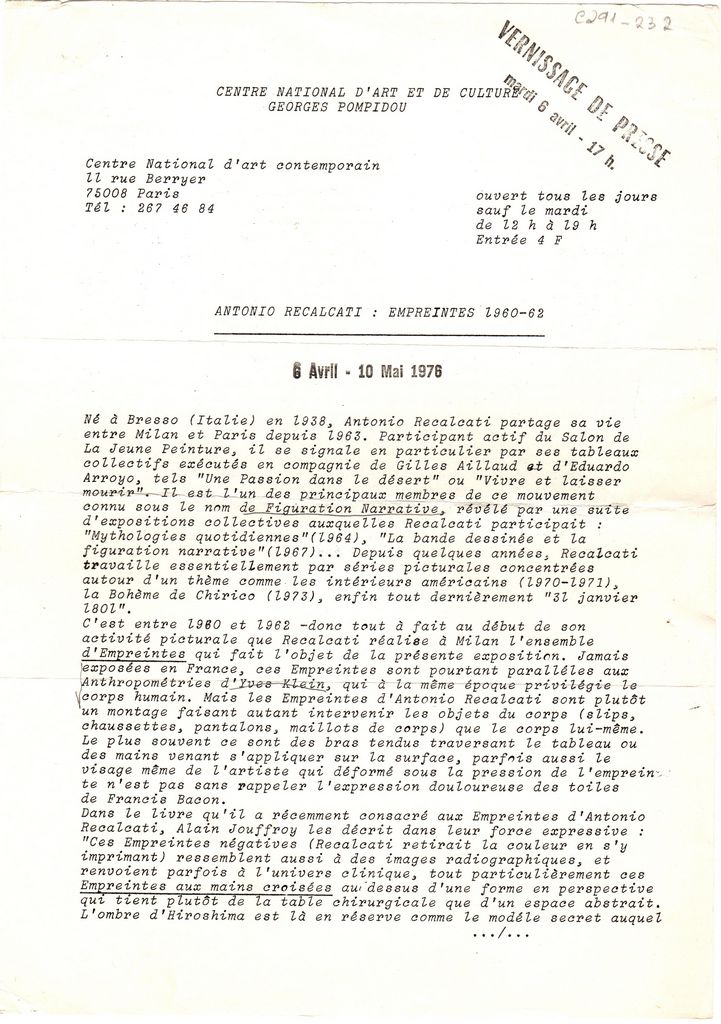 Erró (1932) ; Eduardo Arroyo (1937 - 2018) ; Catherine Millet ; Claude Bouyeure ; Alain Jacquet ; Antonio Recalcati ; Antonio Segui ; Gerard Titus-Carmel ; Marchel van Thienen ; Ay-O (1931) ; Courbet Gustave (1819 - 1877) ; Jacques Monory ; Leonardo Cremonini ; Christian Boltanski (1944 - 2021) ; Fabio Rieti