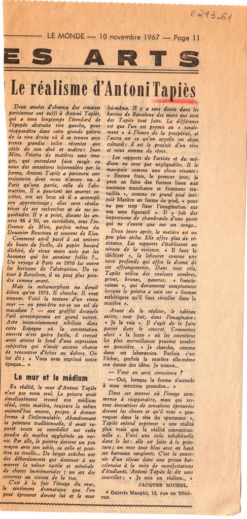 Boudaille Georges (1925 - 1991) ; Spiteris Tonis (1910 - 1986) ; Jacques Michel ; Michel Hoog ; Francis Spar ; Michel Fare ; Gerald Gassiot-Talabot ; André Parinaud ; Roger van Gindertael ; Jean-Dominique Rey ; Jean-Albert Cartier ; Henri-Georges Adam (1904 - 1967) ; Jeanine Warnod ; Genevieve Bonnefoi ; John Ashberry (1927 - 2017) ; Henri Perruchot ; Jean-Clarence Lambert ; Edmond-Henri Humeau ; Jean Gallotti ; Seres Franco ; Jean Adhémar (1908 - 1987) ; Friedrich Bayl ; Georges Duthuit ; Annette Michelson ; Jeanine Lipsi ; Damián Carlos Bayón (1915 - 1995) ; Madeleine Fuchs ; Marina Grey ; Charles Wentinck