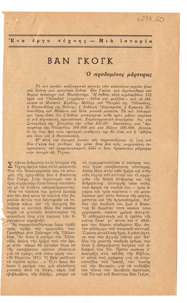 Miliadis Giannis (1895 - 1975) ; Vincent Van Gogh (1820 - 1888) ; Sochos Antonios (1888 - 1975) ; Bouzianis Giorgos (1885 - 1959)