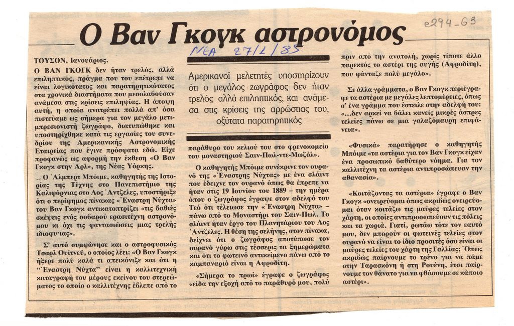 Miliadis Giannis (1895 - 1975) ; Vincent Van Gogh (1820 - 1888) ; Sochos Antonios (1888 - 1975) ; Bouzianis Giorgos (1885 - 1959)