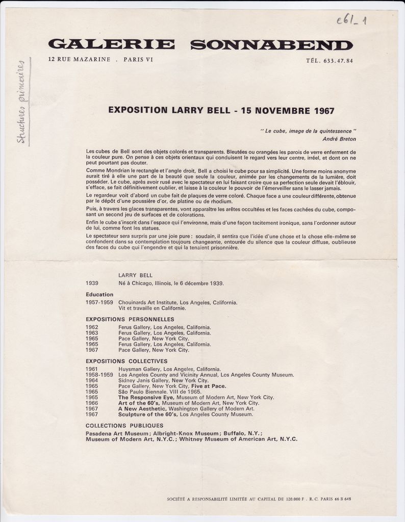 Larry Bell (1939) - Artist
