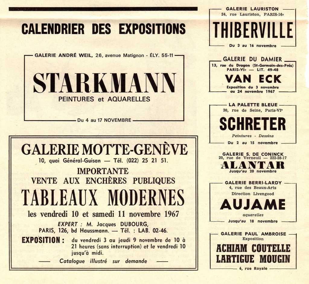Leon Schwarz-Abrys ; Marie-Therese Maugis ; Henri-Georges Adam (1904 - 1967) ; Zygmunt Schreter ; Daniel Milhau ; Renée Halpern ; Gaudin Bolivar (1932 - 2017) ; Isaac Antcher (1899 - 1992) ; Joseph Pressmane ; Leopold Kretz ; Marblo ; Lipkowitch ; Valerie Guetta ; Willard Lindh ; Dobrynski ; Michael Adlen (1898 - 1980) ; Jean Spata ; Honorat ; Ygal ή Igael Tumarkin ; Gleb ; Jordi Pericot ; Jean-Louis Clemenceau ; Aram (1908 - 1998) ; Molli Chwat ; Georges Goldkorn ; Pikeln ; Zafrin ; David Garfinkiel