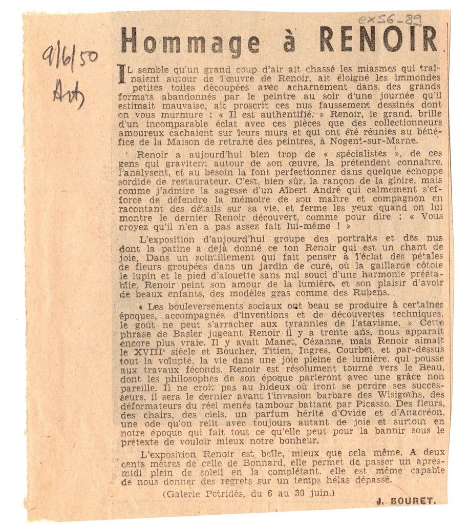 Pierre-Auguste Renoir (1841 - 1919) ; Rodin Auguste (1840 - 1917) ; Moore Henry (1898 - 1986) ; Giacometti Alberto (1901 - 1966) ; Zadkine Ossip (1890 - 1967)