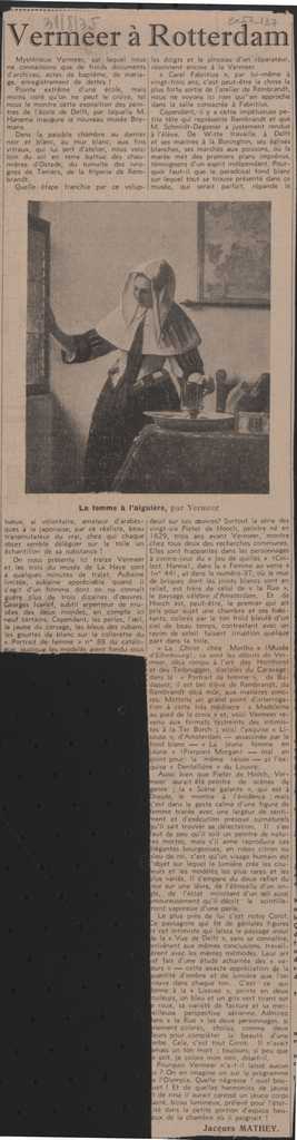 Jean-Jacques Lévêque (1931 - 2011) ; Johannes Vermeer (1632 - 1675) ; Angelopoulos Aristomenis (1900 - 1990)