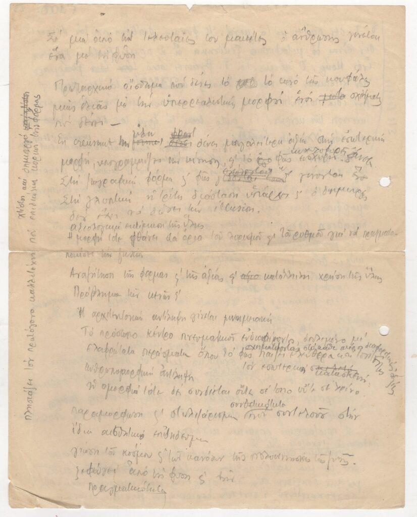 Handwritten draft of a text by Tonis Spiteris about the Greek sculptor Michalis Tompros.