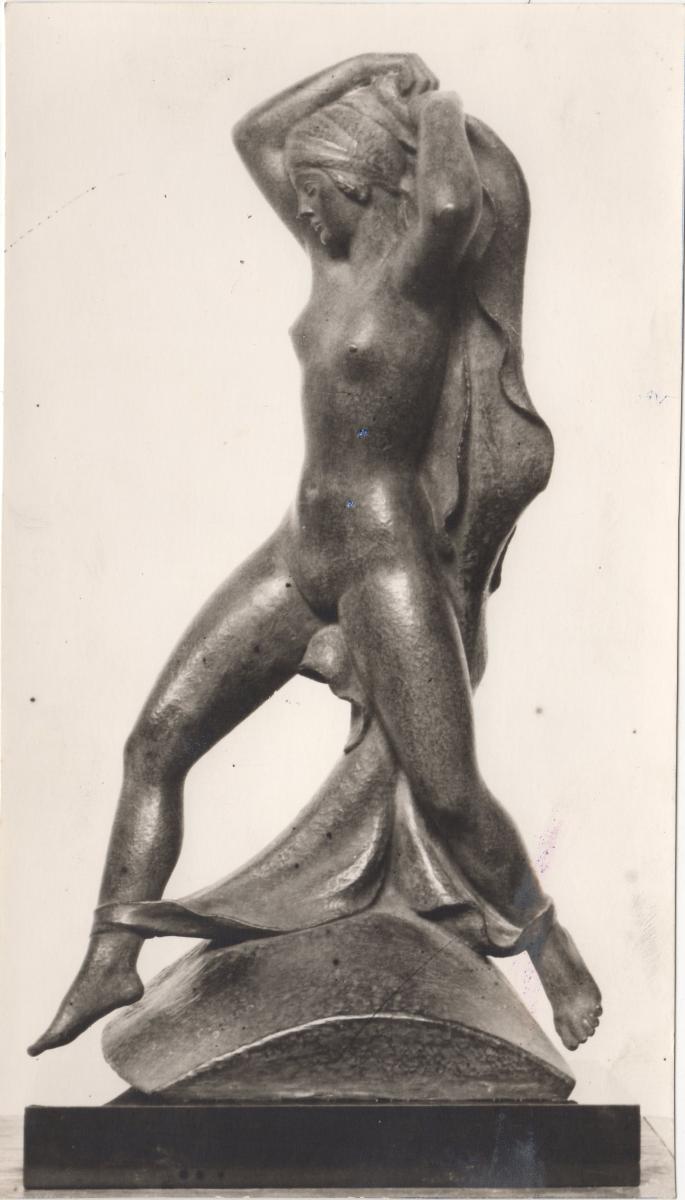 Black-and-white photograph of the sculptor Michalis Tombros.