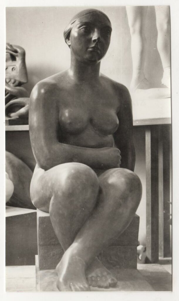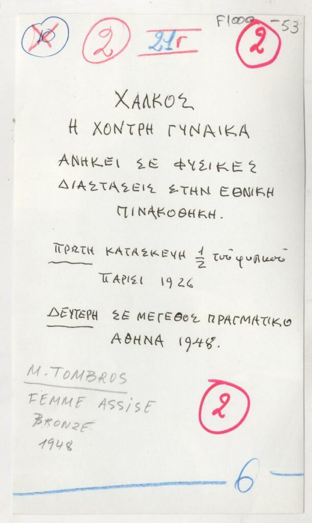 Black-and-white photograph of the sculptor Michalis Tombros. On the reverse, handwritten inscriptions