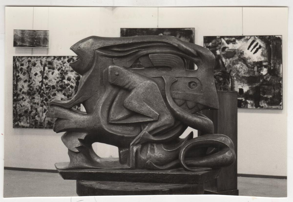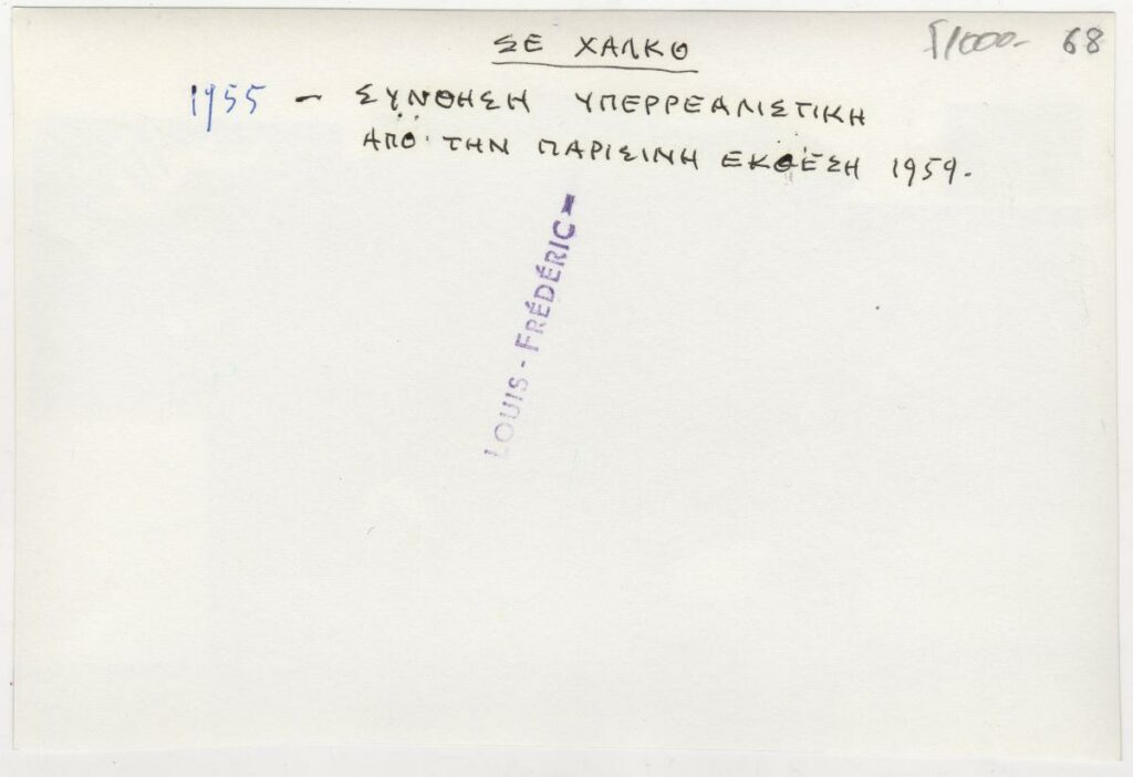 Photograph of a work by Michalis Tombros. On the reverse side, an inscription indicates that the work was exhibited in Paris in 1959