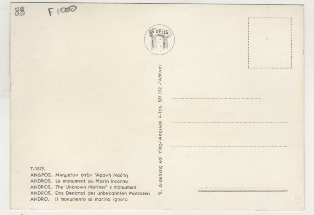 Postcard featuring a photograph of a sculpture by Michalis Tompros.