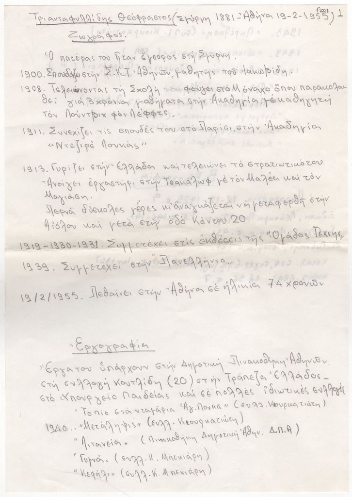 Parthenis Konstantinos (1878 - 1967) ; Michalis Tompros (1889 - 1974) ; Maleas Konstantinos (1879 - 1928) ; Odysseas Focas (1857 - 1946) ; Theophrastos Triantaphyllidis (1881 - 1955) ; Sochos Antonios (1888 - 1975) ; Papantoniou Zacharias (1877 - 1940) ; Vyzantios Periclis (1893 - 1972) ; Thomas Thomopoulos (1873 - 1937) ; Zevgolis Grigorios (1886 - 1950) ; Kogevinas Lykourgos (1887 - 1940) ; Lytras Nikolaos (1883 - 1927) ; Othonaios Nikolaos (1877 - 1949) ; Stefanopoulos Dimitrios (1881 - 1932) ; Όθων Περβολαράκης ; Σταύρος Καντζίκης