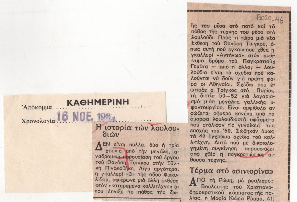 Andreadi Efi (20th century) ; Thanos Tsingos (1914 - 1965) ; Opy Zouni (1941 - 2008) ; Kontopoulos Alekos (1904 - 1975) ; Karas Christos (1930 - 2023) ; Beba Angelinou ; Niki Kanagini (1933 - 2008) ; Χέρμαν Φραντς Βλάουτ