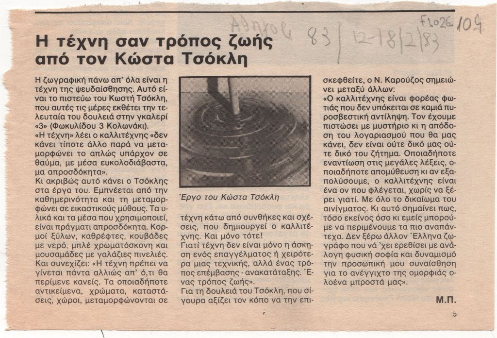 Fatouros Dimitris (1928 - 2020) ; Raftopoulou, Bella (1902 - 1992) ; Pavlos (Dionyssopoulos) (1930 - 2019) ; Sachinis Nikos (1924 - 1989) ; Fassianos Alekos (1935 - 2022) ; Tsoclis Costas (1930) ; Kapralos Christos (1909 - 1993) ; Sklavos Gerasimos (1927 - 1967) ; Antonakatou Diana (1922 - 2011) ; Zongopoulos George (1903 - 2004) ; Apergis Achilleas (1909 - 1986) ; Mylonas Alex (1923 - 2016) ; Koulentianos Kostas (1918 - 1995) ; Avramidis Ioannis (1922 - 2016) ; Mytaras Dimitris (1934 - 2017) ; Papadimitriou Theodoros (1931 - 2018) ; Karras Christos (1930 - 2023) ; Δανιήλ Δανιήλ (1914 - 1988) ; Philolaos (1923 - 2010) ; Pappas Giannis (1913 - 2005) ; Μαριλένα Κλωνάρη ; Loucopoulos, Clearchos (1906 - 1995) ; Liberaki Aglae (1923 - 1985) ; Nikolaidis Giorgos (1924 - 2001) ; Stephopoulos Thanasis (1928 - 2012) ; Γιάννης Κοντός ; Μήτσος Ευθυμιάδης ; Κώστας Κηλαηδόνης ; Gerda Schmidt-Panknin