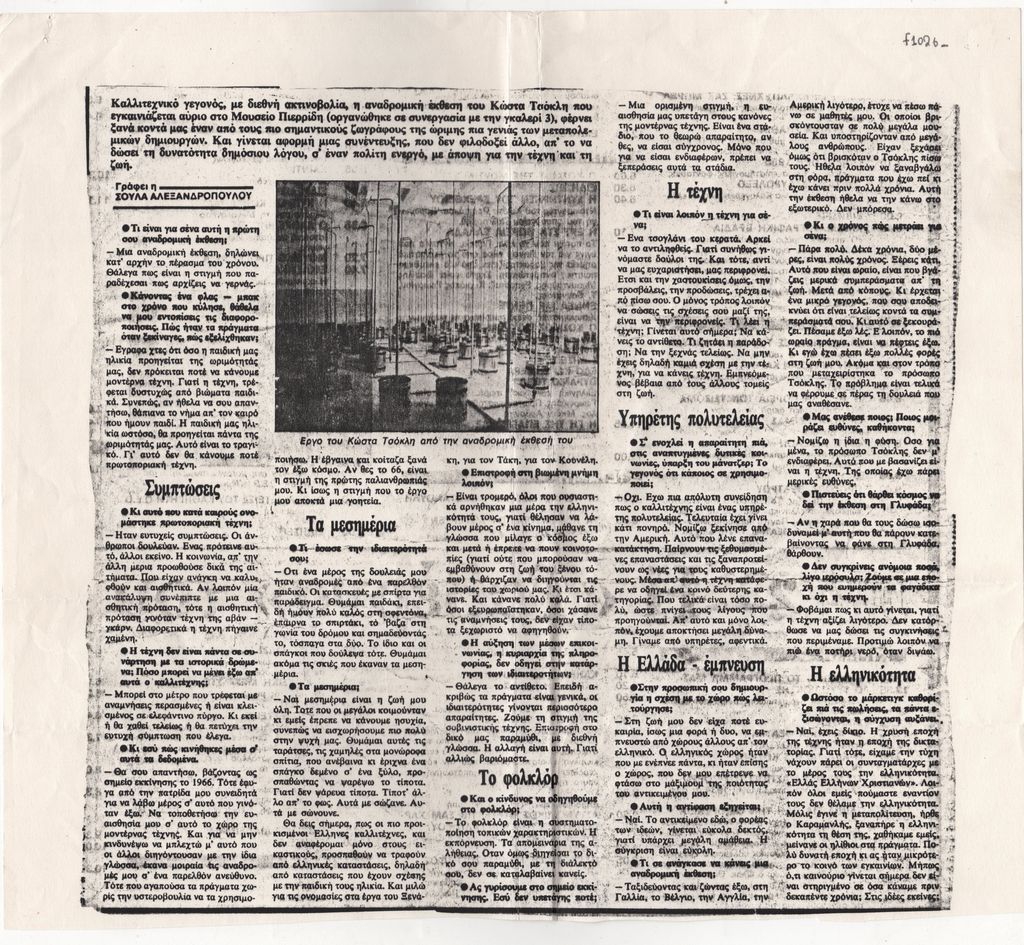 Spiteris Tonis (1910 - 1986) ; Katraki Vaso (1914 - 1988) ; Spiteri-Veropoulou Ioanna (1920 - 2000) ; José Pierre ; Michalis Katzourakis ; Fassianos Alekos (1935 - 2022) ; Simossi Gabriela (1926 - 1999) ; Tsoclis Costas (1930) ; Opy Zouni (1941 - 2008) ; Gaitis Yannis (1923 - 1984) ; Mytaras Dimitris (1934 - 2017) ; Karas Christos (1930 - 2023) ; Denis Schneider ; Vernadaki Eleni (1933) ; Takis (Vassilakis Panayiotis) (1925 - 2019) ; Sperantzas Vassilis (1938) ; Alexis Akrithakis (1939 - 1994) ; Achilleas Droungas (1940) ; Theofylaktopoulos Makis (1939 - 2023) ; Kaniaris Vlassis (1928 - 2011) ; Karavouzis Sarantis (1938 - 2011) ; Θεόδωρος Μανωλίδης (1940)