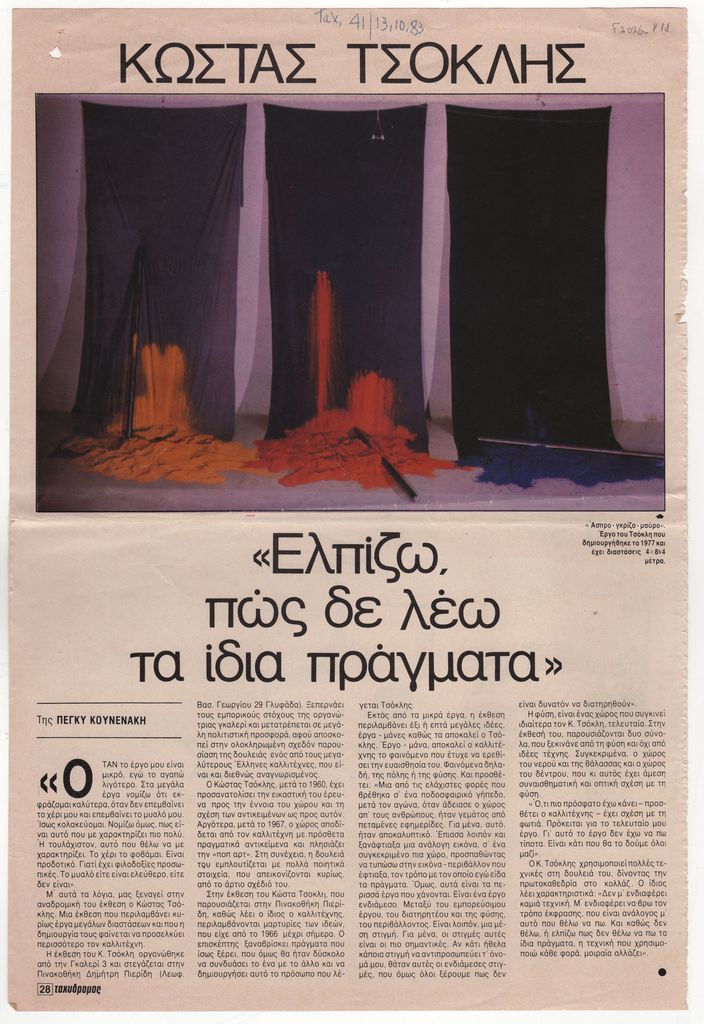 Spiteris Tonis (1910 - 1986) ; Katraki Vaso (1914 - 1988) ; Spiteri-Veropoulou Ioanna (1920 - 2000) ; José Pierre ; Michalis Katzourakis ; Fassianos Alekos (1935 - 2022) ; Simossi Gabriela (1926 - 1999) ; Tsoclis Costas (1930) ; Opy Zouni (1941 - 2008) ; Gaitis Yannis (1923 - 1984) ; Mytaras Dimitris (1934 - 2017) ; Karas Christos (1930 - 2023) ; Denis Schneider ; Vernadaki Eleni (1933) ; Takis (Vassilakis Panayiotis) (1925 - 2019) ; Sperantzas Vassilis (1938) ; Alexis Akrithakis (1939 - 1994) ; Achilleas Droungas (1940) ; Theofylaktopoulos Makis (1939 - 2023) ; Kaniaris Vlassis (1928 - 2011) ; Karavouzis Sarantis (1938 - 2011) ; Θεόδωρος Μανωλίδης (1940)