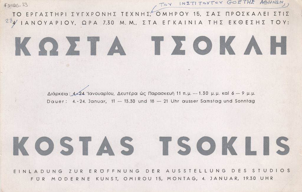 Spiteris Tonis (1910 - 1986) ; Katraki Vaso (1914 - 1988) ; Spiteri-Veropoulou Ioanna (1920 - 2000) ; José Pierre ; Michalis Katzourakis ; Fassianos Alekos (1935 - 2022) ; Simossi Gabriela (1926 - 1999) ; Tsoclis Costas (1930) ; Opy Zouni (1941 - 2008) ; Gaitis Yannis (1923 - 1984) ; Mytaras Dimitris (1934 - 2017) ; Karas Christos (1930 - 2023) ; Denis Schneider ; Vernadaki Eleni (1933) ; Takis (Vassilakis Panayiotis) (1925 - 2019) ; Sperantzas Vassilis (1938) ; Alexis Akrithakis (1939 - 1994) ; Achilleas Droungas (1940) ; Theofylaktopoulos Makis (1939 - 2023) ; Kaniaris Vlassis (1928 - 2011) ; Karavouzis Sarantis (1938 - 2011) ; Θεόδωρος Μανωλίδης (1940)