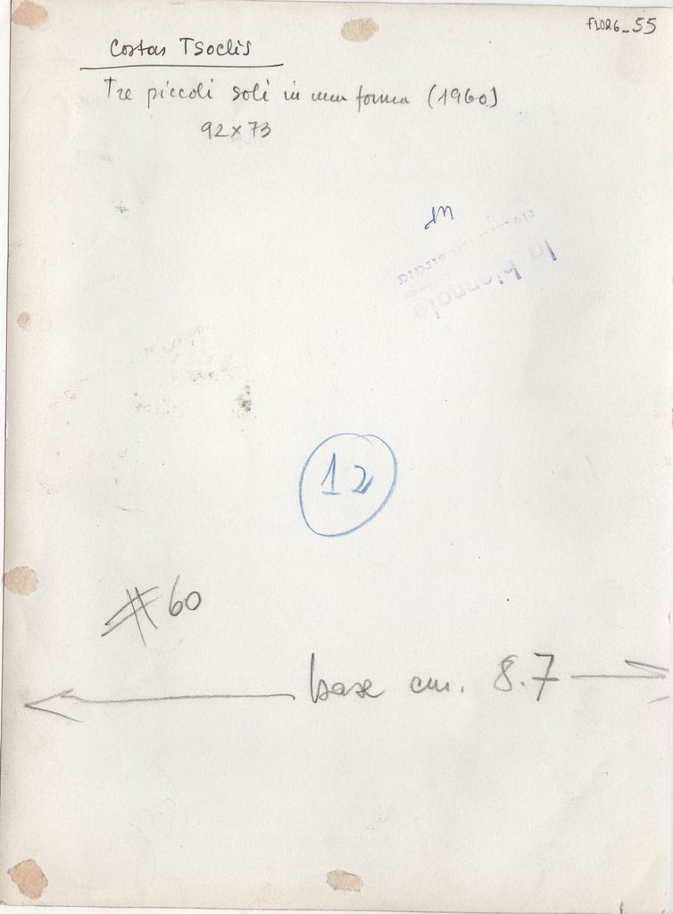 Spiteri-Veropoulou Ioanna (1920 - 2000) ; Vassiliou Spyros (1902 - 1985) ; Michalis Tompros (1889 - 1974) ; Rene Deroudille ; Τέρψη Κυριακού (1916 - 1993) ; Tsoclis Costas (1930) ; Sklavos Yerassimos (1927 - 1967) ; Mylonas Alex (1923 - 2016) ; Gaitis Yannis (1923 - 1984) ; Karas Christos (1930 - 2023) ; Francis Bacon (1909 - 1992) ; Villon Jacques (1875 - 1963) ; Parandinos Nikolaos (1910 - 1991) ; Alberto Burri (1915 - 1995) ; Μανώλης Πιλαδάκης (1927) ; Claude Santa