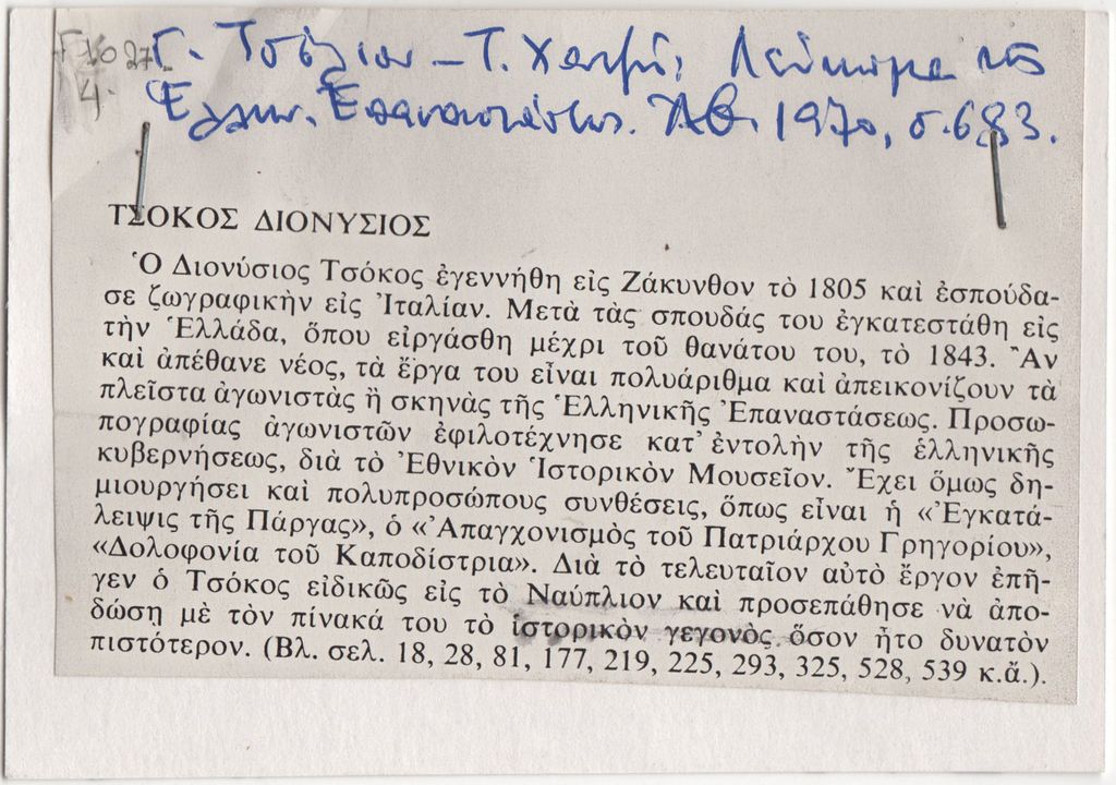 Τσούλιος, Γ. / Χατζής, Τ. (επιμ.), "Ιστορικόν Λεύκωμα της Ελληνικής Επαναστάσεως", Αθήνα, Μέλισσα, 1970.