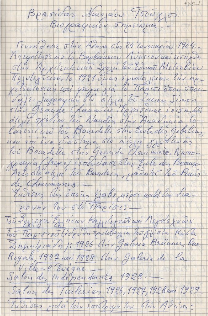Spiteris Tonis (1910 - 1986) ; Miliadis Giannis (1895 - 1975) ; Papanoutsos Evangelos (1900 - 1982) ; Vassiliou Spyros (1902 - 1985) ; Evangelidis Dimitrios E. ; Maggiorou Loukia (1914 - 2008) ; Tassos (Anastasios Alevizos) (1914 - 1985) ; Chatzidakis Manolis (1909 - 1998) ; Hatzikyriakos-Ghika Nikos (1906 - 1994) ; Katsimpalis, Georgios (1899 - 1978) ; Moralis Yannis (1916 - 2009) ; Gounaropoulos Georgios (1889 - 1977) ; Papaloukas Spyros (1892 - 1957) ; Spyropoulos Yannis (1912 - 1990) ; Kalligas Marinos (1906 - 1985) ; Δημήτρης Ψαθάς (1907 - 1979) ; Kapralos Christos (1909 - 1993) ; Frantziskakis Errikos (1908 - 1958) ; Sochos Antonios (1888 - 1975) ; Bouzianis Giorgos (1885 - 1959) ; Vrasidas Tsouchlos (1904 - 1981) ; Vakalo Giorgos (1902 - 1991) ; Kitsikis Konstantinos ; Georgiadis Andreas, Kris (1892 - 1981) ; Chrysochoidou, Titsa (1906 - 1990) ; Nikos Nikolaou (1909 - 1986) ; Pappas Giannis (1913 - 2005) ; Georgios Kosmadopoulos (1895 - 1967) ; Spahis Angelos (1903 - 1963) ; Μίμης Καραγάτσης (1908 - 1960) ; Άγγελος Θεοδωρακόπουλος (1882 - 1965) ; Π. Τσολάκου ; Αλέκος Πατσιφάς ; Κ. Βασιλειάδης ; Ρένος Κουτσούρης